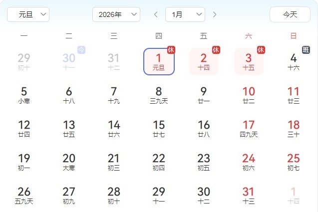 根据国家相关假日规定,我公司对2026年元旦放假作出如下安排: